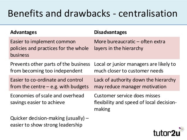 Vrio analysis for Decentralisation Advantages And Limitations Of Decentralization case study identified the four main attributes which helps the organization to gain a competitive advantages. Benefits and Problems Active tax competition in short tends to produce either a generally low level of statelocal tax effort or a statelocal tax structure with strong regressive features. You can choose if the decentralization model suits your business or organization once you go through the merits and demerits of decentralization.