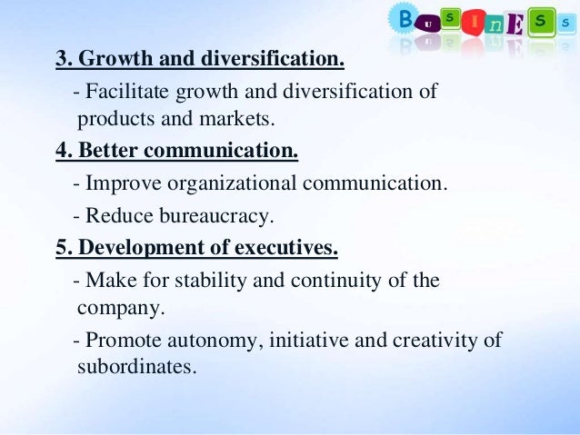 Merits or Advantages of Decentralization It motivates subordinates for high goals. Log In with Facebook Log In with Google. The main concept behind decentralization is the delegation of responsibility and the sharing of making decisions across various levels in an organization.