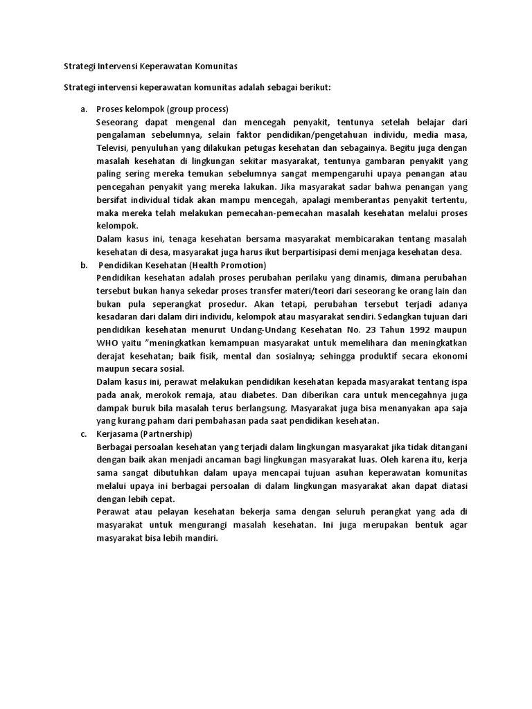 Strategi Intervensi Keperawatan Komunitas